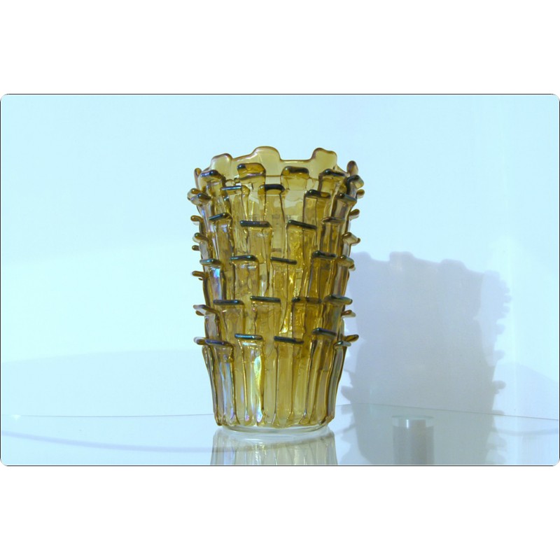 THE RITAGLI use a glassmaking technique created by Fulvio Bianconi, the most innovative and evocative of the twentieth century, small rectangular glass strips applied one above the other on a blown and hand-crafted truncated cone base