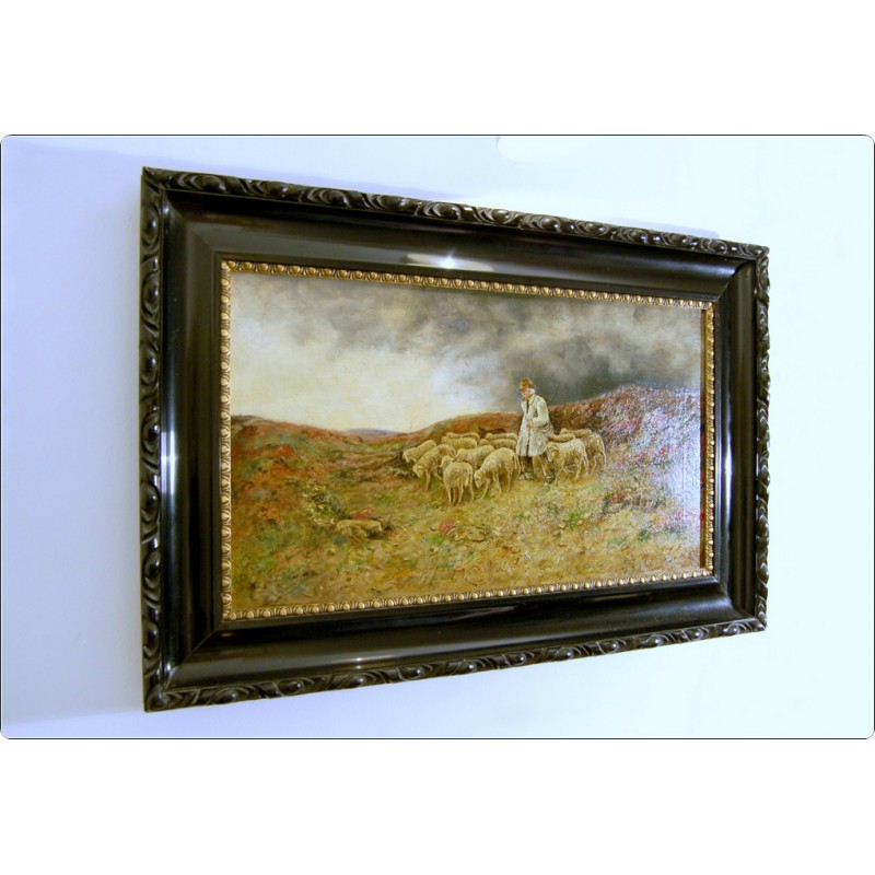 Elegant work of art, consisting of an oil painting on canvas, painted in the absolute Barbizon style