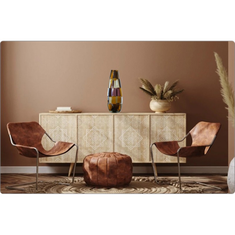 The vase is made up of cold-cut tiles which are subsequently heated and applied to the vase. Bianconi's piebalds were a great success at the 9th Milan Triennale in 1951
