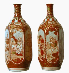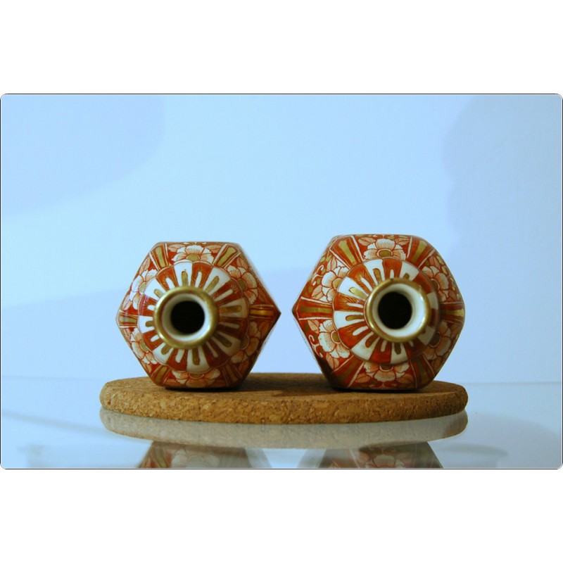 These vases, dating back to the late 1800s, are distinguished by their red background and their elaborate gold decoration, depicting flowers and scenes of everyday life