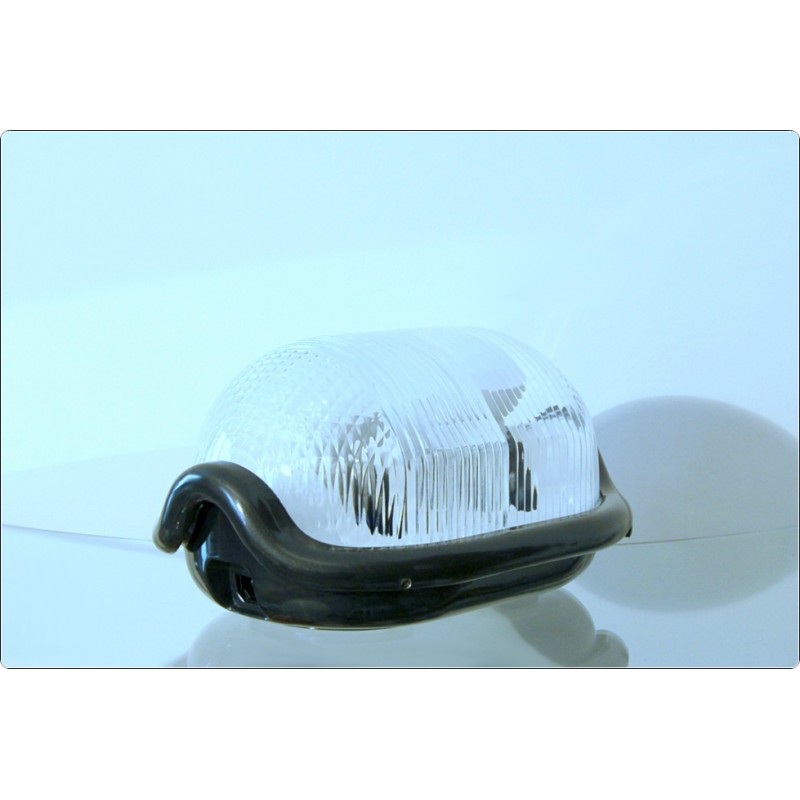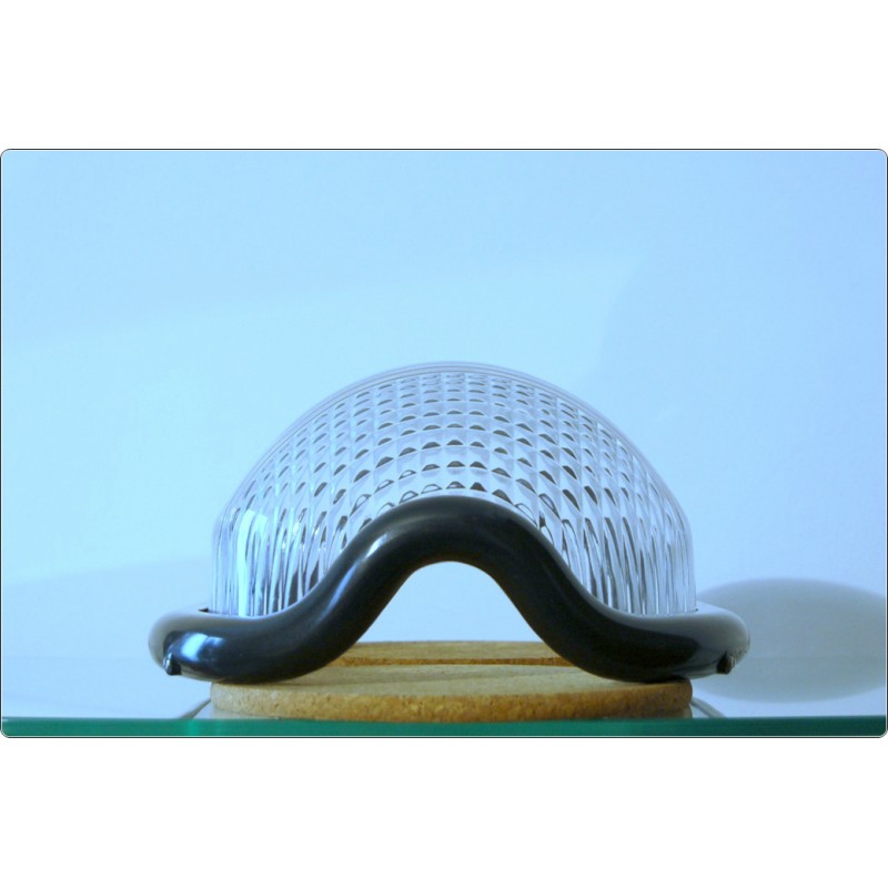 Rounded lamp with thick metal structure, transparent glass diffuser