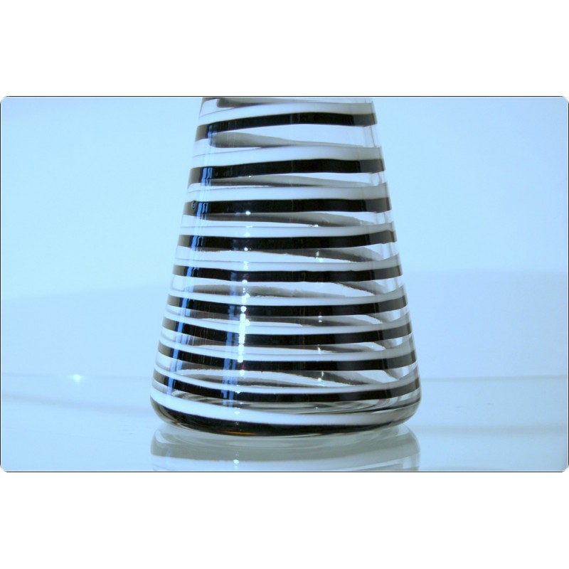 Bottiglia realizzata con la tecnica dell'incalmo, tecnica vetraria che consente la realizzazione di oggetti costituiti da parti distinte unite a caldo