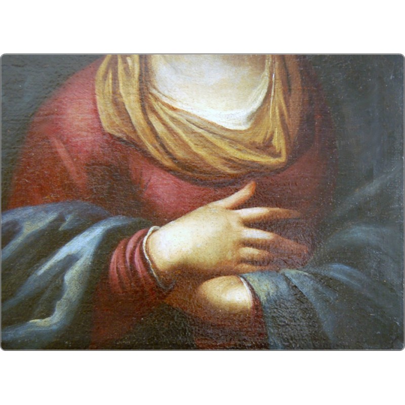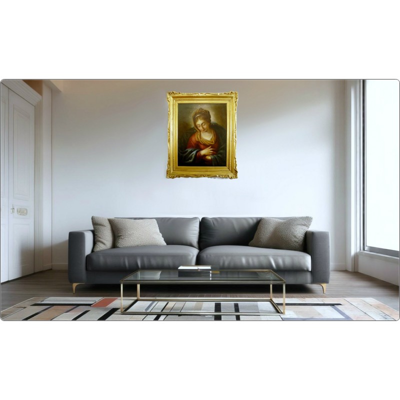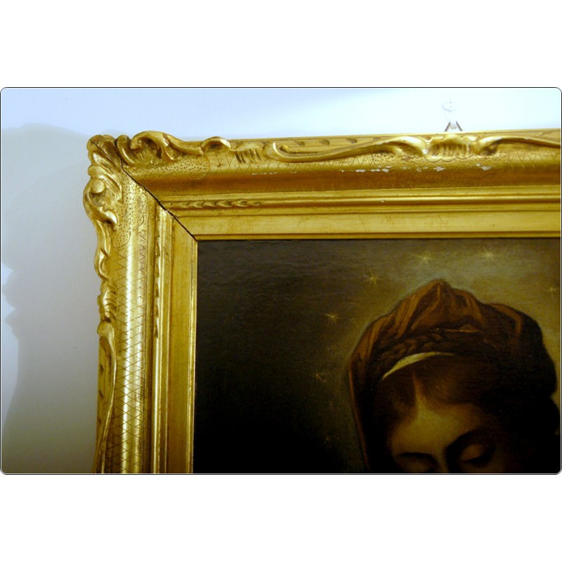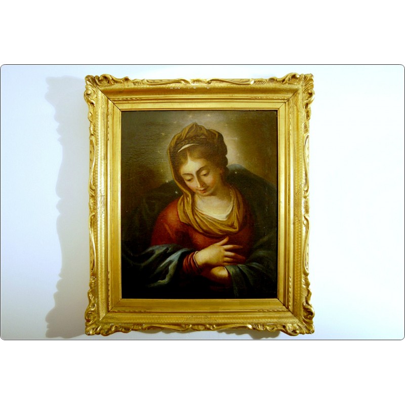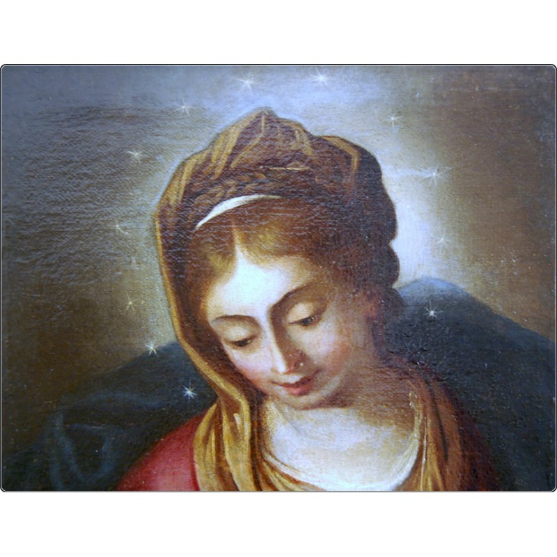 Eccellente esecuzione con tecnica ad Olio su Tela, dipinto raffigurante una soave Vergine Immacolata, ottima resa pittorica nelle bellissime tonalità dai colori delicati, nell’opera si evincono raffinati elementi che prendono spunto da modelli cinquecenteschi