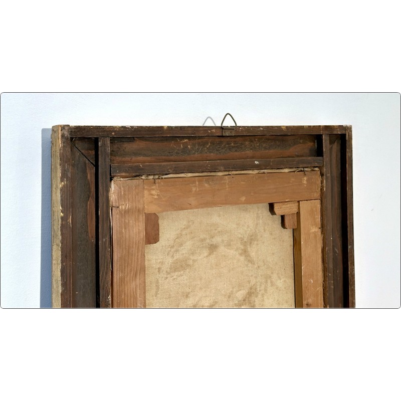In ottimo stato conservativo, non ha subito interventi di restauro, il dipinto è accompagnato da una pregiata cornice decorata