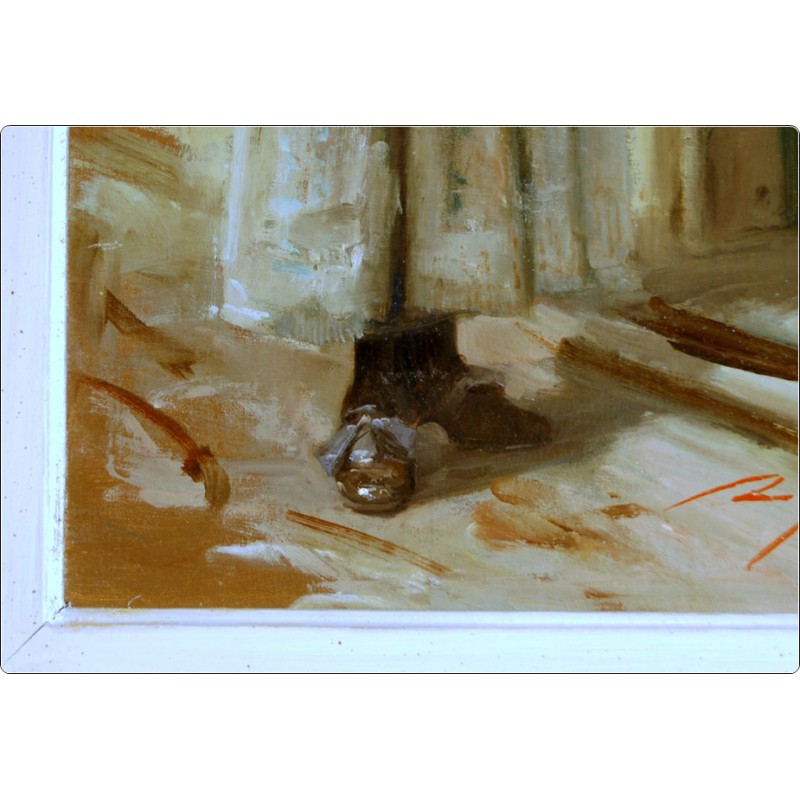 Olio su tela, firmato in basso a destra e ulteriore firma e timbro sul retro