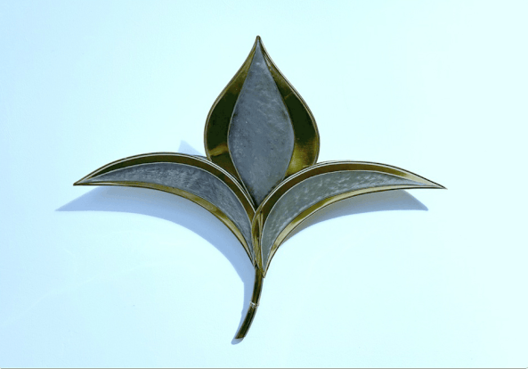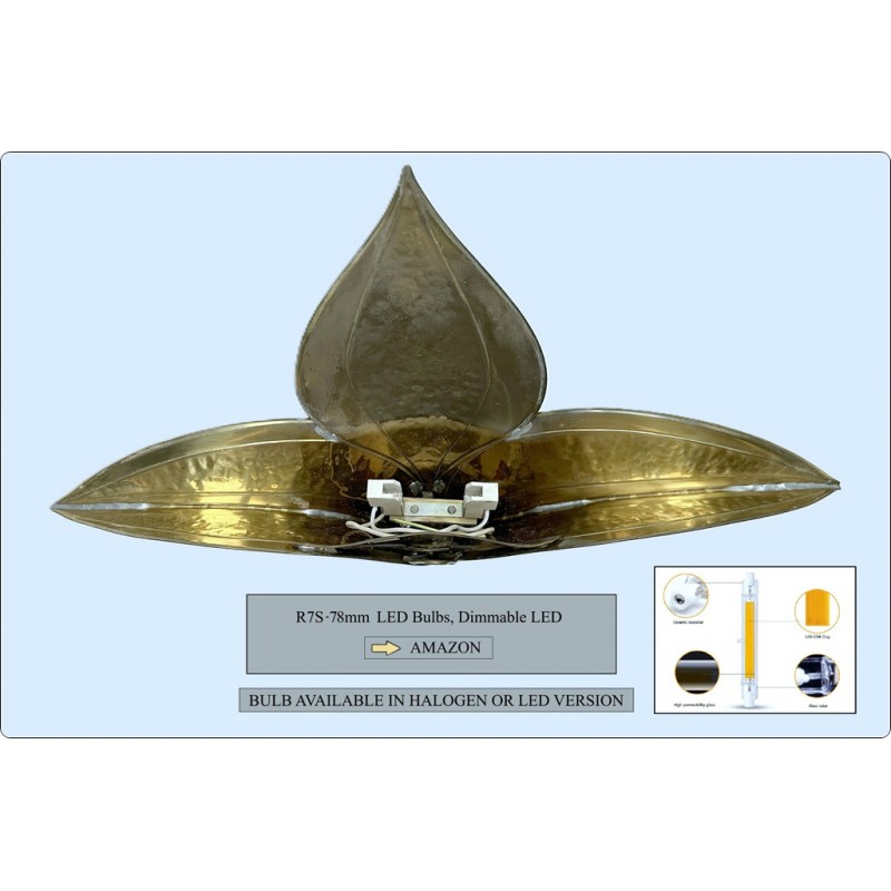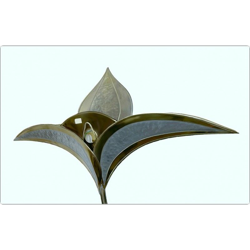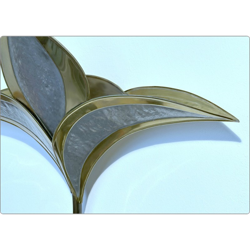 Rara lampada da parete dell'artista Henri Fernandez, di generose dimensioni a forma di foglia, realizzata interamente in ottone con finiture argento