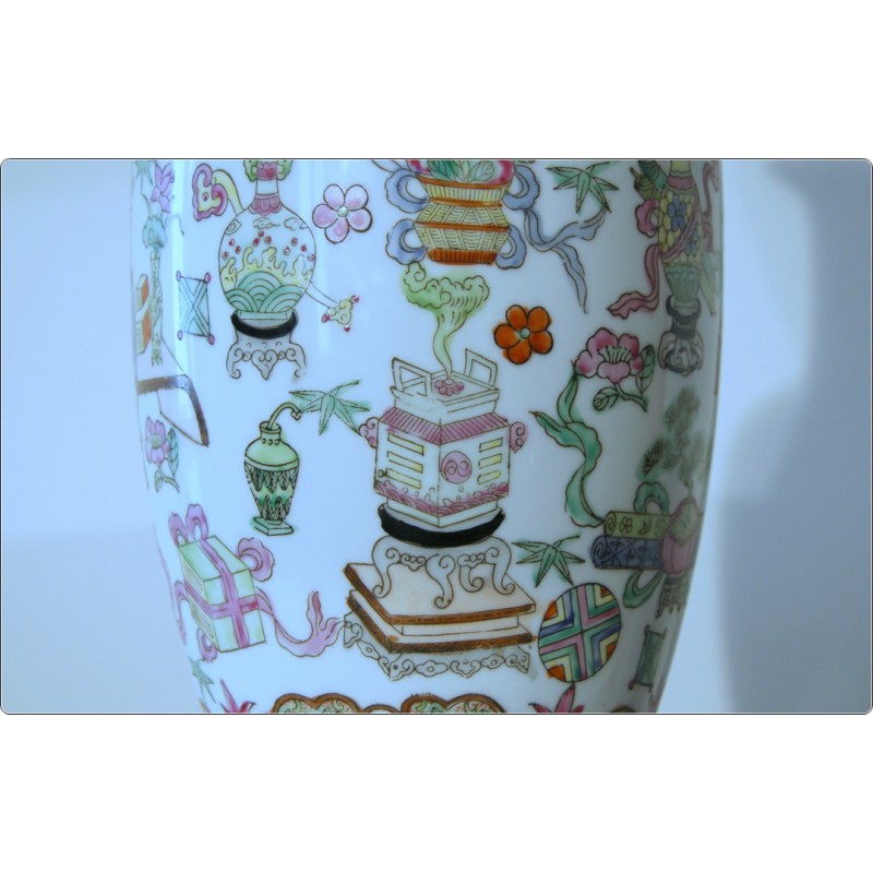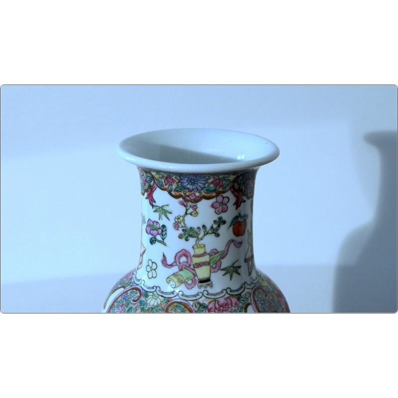 Questo stile di porcellana, originario di Guangzhou ( Canton ), è caratterizzato da decorazioni ricche e dettagliate, spesso con motivi floreali, scene di vita quotidiana o figure mitologiche