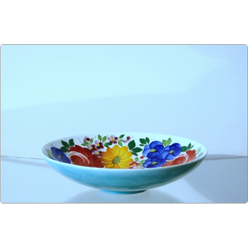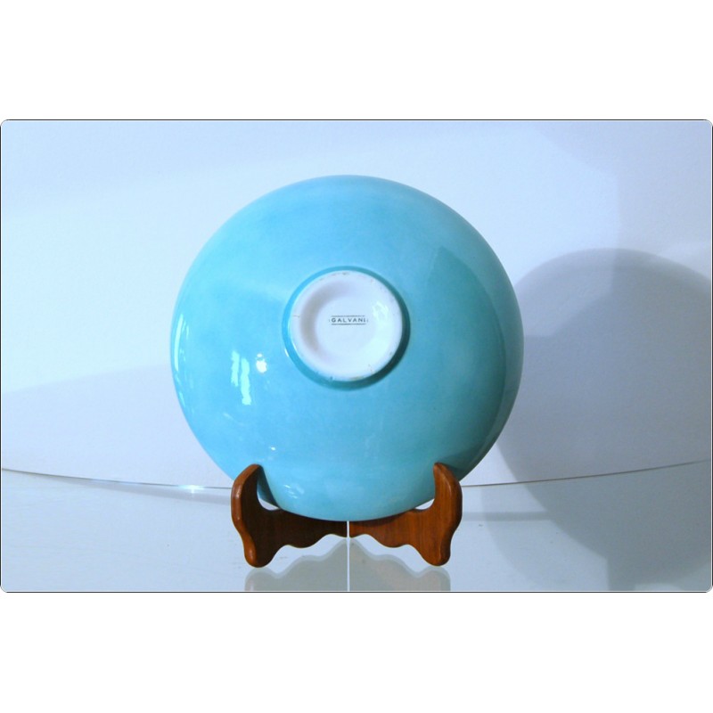 Raro centrotavola della manifattura GALVANI, decoro floreale e fondo azzurro